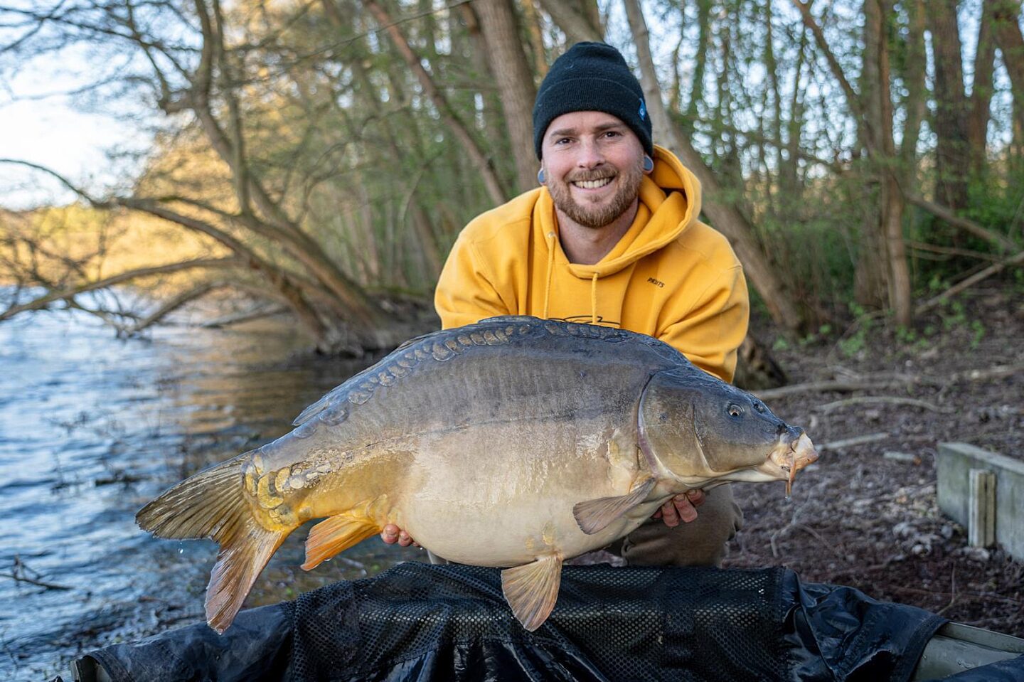 8. Jeder Angler braucht einen Kescher mit einer Öffnung von mindestens 90 cm, eine Abhakmatte oder Cradle, die mindestens 5 cm dick, 60 cm breit und 90 cm lang ist, einen Wiegesack und ein Desinfektionsmittel (Carp Care) um die Karpfen zu pflegen. Wathose ist empfohlen.