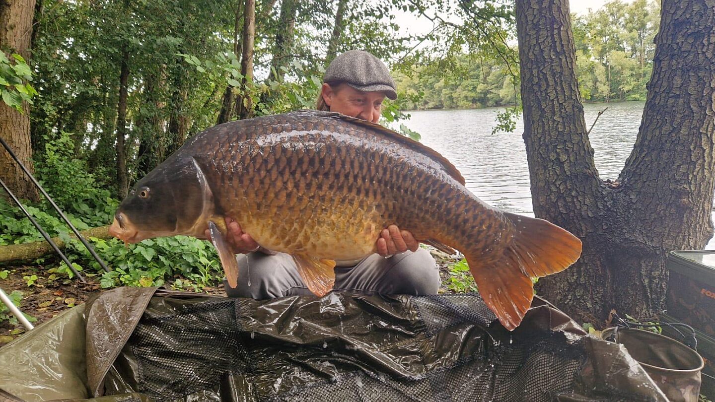 Mit einer Wasserfläche von 7.5 Hektar und einer Länge von 645 Meter ist unser See Chef de Ville ein sehr besonderes Karpfengewässer. Aufgrund der Länge und eher geringen Breite ermöglicht der See den Einsatz vieler Taktiken und verspricht abwechslungsreiches Karpfenangeln. Jede Angelstelle hat ihre ganz speziellen Eigenheiten und verfügt über zahlreiche erfolgsversprechende Spots. Chef Ville ist ideal für Gruppen von bis zu 8 Anglern, die einen ganzen See für sich allein haben möchten. Sie können natürlich auch gerne allein buchen. Karpfen mit Gewichten bis 29kg (Stand 2025) sind aktuell möglich, die Fische wachsen stetig weiter.