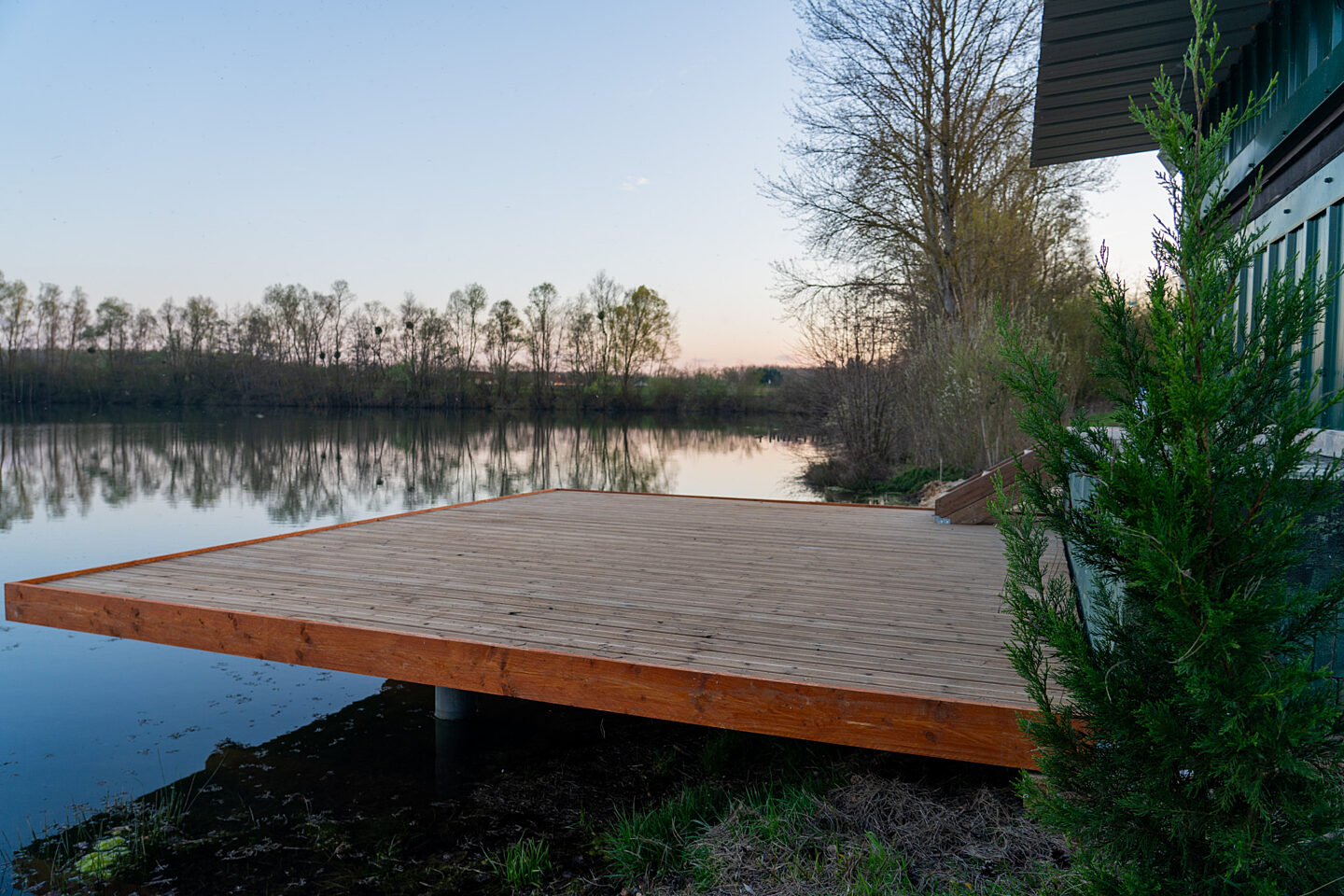 Juste devant ce Lodge vous retrouverez un grand ponton en bois, idéal pour y poser 2 ou 3 rod pod.